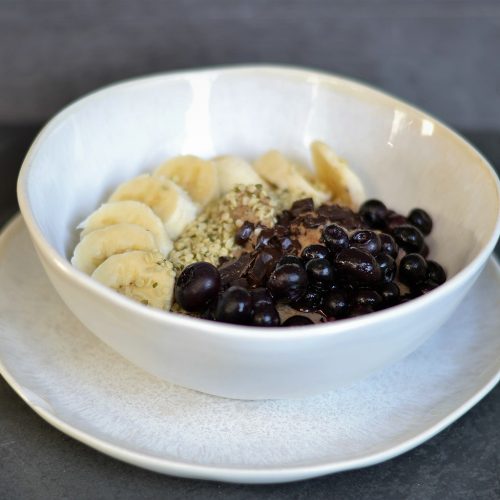 - Toppings wie Banane, Beeren, Schokolade, Hanfsamen, Mandelmus,...